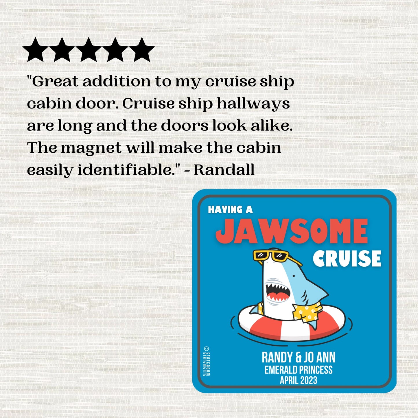 By popular demand; a cruise door classic! Cruise vacations are all about a bit of overindulgence on the lido deck- but it's only fair to warn your stateroom neighbors of your boozy hijinks. Celebrate the joy of unlimited cocktails with this clever cruise door magnet.