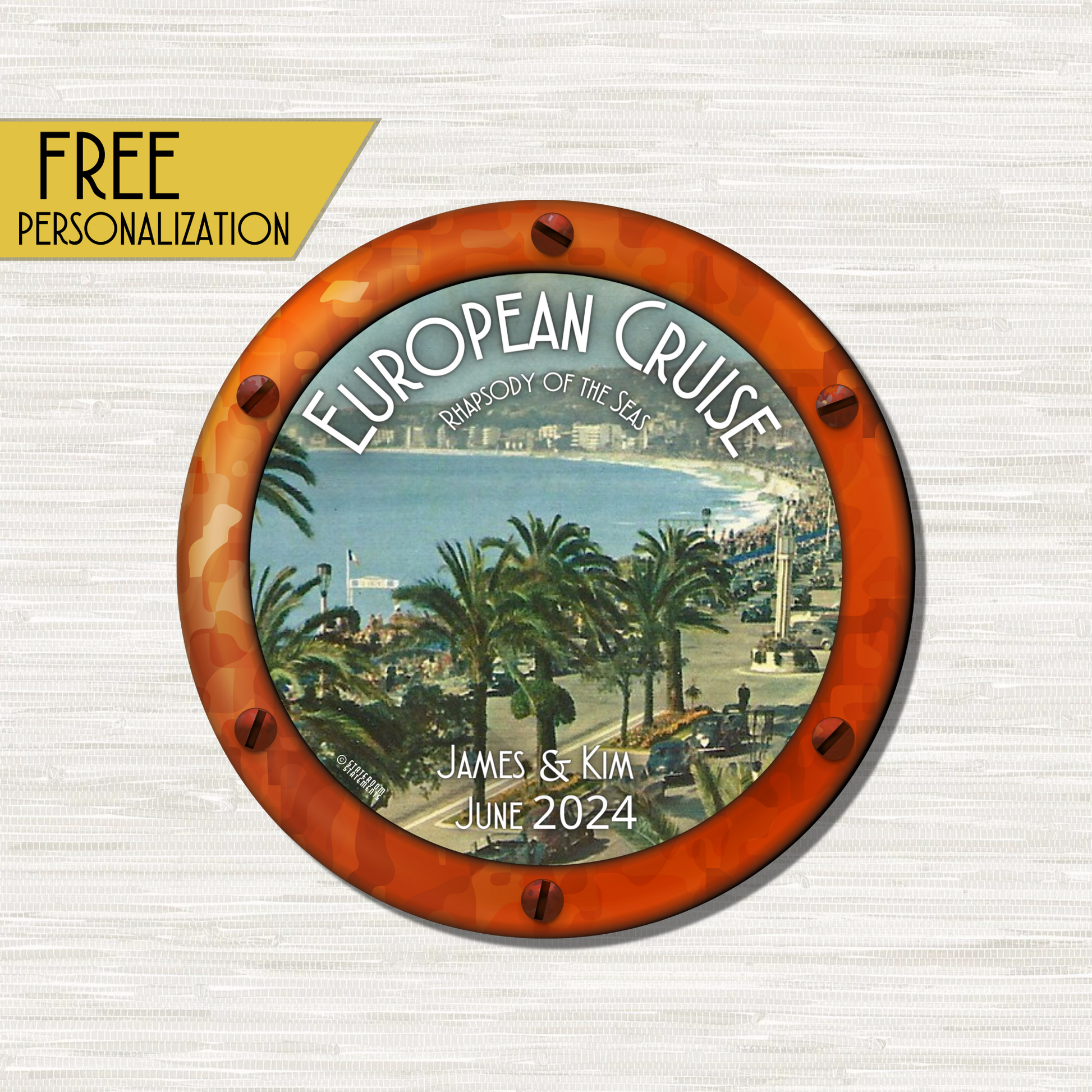 Get ready for your unforgettable journey through the heart of Europe with our European Cruise Door Magnet. This stylish magnet is the perfect decoration for your cabin door, and it will help you remember your amazing European adventure for years to come. Enjoy FREE personalization with your name and sailing details.