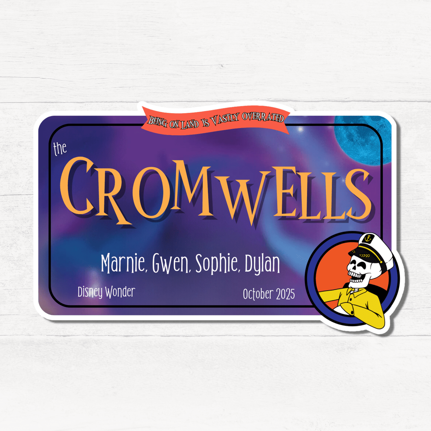Join Marnie and crew as you cruise into a world where spooky meets nautical, all while showcasing your love for this beloved Halloween classic. This spooky nautical Disney Cruise door decoration Includes free personalization with your name and cruise details.